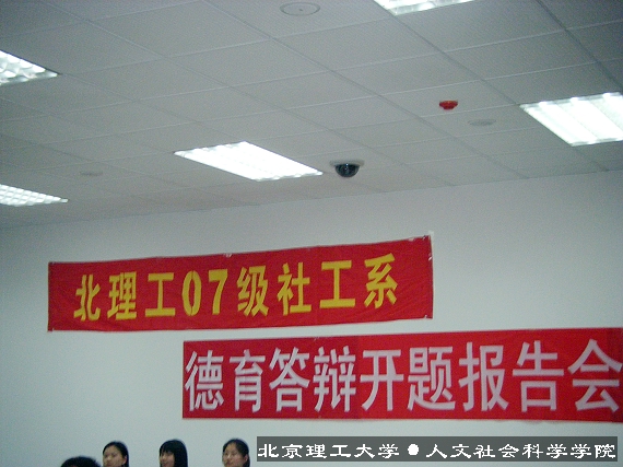 德育答辯開(kāi)題報(bào)告是北京理工大學(xué)對(duì)本科生進(jìn)行思想政治教育的重要環(huán)節(jié), 對(duì)于畢業(yè)時(shí)的德育答辯工作能否順利進(jìn)行非常重要。為了此次報(bào)告會(huì)的勝利召開(kāi),從本學(xué)期開(kāi)始,我班就積極進(jìn)行策劃,與輔導(dǎo)員老師溝通,為開(kāi)題報(bào)告作了充分的準(zhǔn)備。2008年3月28日,大家期盼已久的“揮灑青春,成就夢(mèng)想”德育答辯開(kāi)題報(bào)告會(huì)在綜合樓302室如期舉行。出席的嘉賓有人文學(xué)院院長(zhǎng)張紅俊老師、中國(guó)社會(huì)報(bào)高一村女士、家長(zhǎng)代表宋曉蘭女士、人文學(xué)院07級(jí)輔導(dǎo)員李雙老師、07級(jí)社工班婁佳坤老師,及經(jīng)濟(jì)班和法學(xué)班的部分同學(xué)。他們的出席,充分說(shuō)明了學(xué)校和社會(huì)對(duì)這次報(bào)告會(huì)的關(guān)注和重視,這使同學(xué)們感到莫大的鼓勵(lì)和支持。