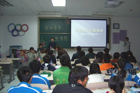 2008年3月29日,招生就業(yè)工作處黨支部全體成員在支部書記郝志強的帶領(lǐng)下,到良鄉(xiāng)校區(qū)參加2007級信息工程一班(01510701班)德育答辯開題報告會。