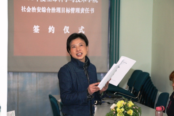 儀式開始前,李蘭東書記介紹了學(xué)校關(guān)于2008年社會(huì)治安綜合治理工作以及“平安奧運(yùn)”行動(dòng)實(shí)施方案的相關(guān)精神,強(qiáng)調(diào)了該項(xiàng)工作的重要意義,特別指出08年時(shí)值奧運(yùn)年,學(xué)校將迎來奧運(yùn)賽事,所以一定要層層落實(shí)責(zé)任制,確保在社會(huì)治安綜合治理工作不能出現(xiàn)任何問題。學(xué)院繼續(xù)堅(jiān)持通過社會(huì)治安綜合治理目標(biāo)責(zé)任書的形式,將責(zé)任制延伸,責(zé)任明確,落實(shí)到人。唐曉英副院長(zhǎng)向大家詳細(xì)介紹了安全責(zé)任書的相關(guān)內(nèi)容。