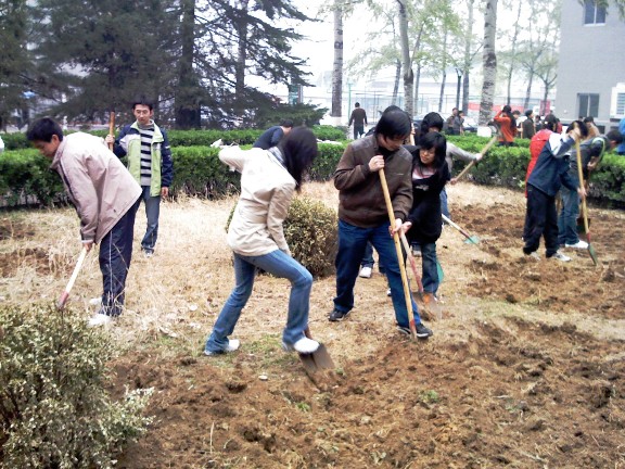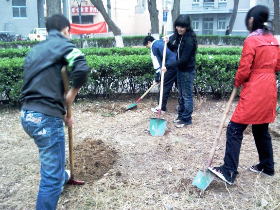 綠化活動(dòng)開始后,在李蘭東書記的帶領(lǐng)下,老師和同學(xué)們揮鍬掄鎬,一派熱火朝天,此次校園綠化活動(dòng)的主要任務(wù)是深翻綠地,在大家都一起努力下,我院所負(fù)責(zé)的區(qū)域不到一小時(shí)就解決了“戰(zhàn)斗”。隨后,大家一鼓作氣,協(xié)助兄弟學(xué)院,共同完成了本次綠化活動(dòng)。