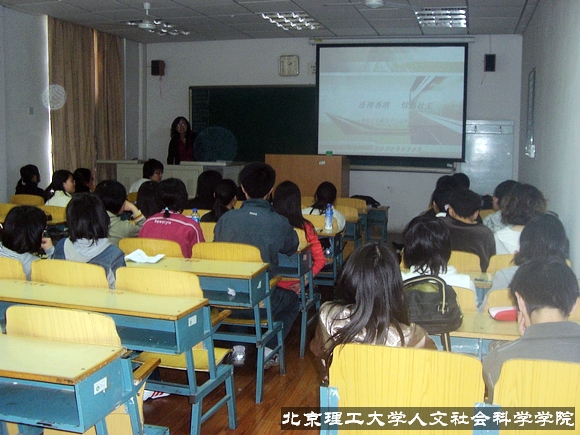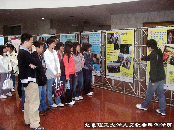 2008年4月6日,北京理工大學(xué)人文學(xué)院社會工作系組織了良鄉(xiāng)校區(qū)社工專業(yè)07級學(xué)生進(jìn)行了為期一天的“參觀本部校區(qū),傳承社工文化”的主題活動。早上十點(diǎn)整,07級社會工作專業(yè)的同學(xué)們在大三學(xué)長的帶領(lǐng)下參觀了中教報(bào)告廳的香港實(shí)習(xí)匯報(bào)展覽。參觀伊始,05級學(xué)生為每名07級學(xué)生印制并發(fā)放了《社會工作系年級經(jīng)驗(yàn)交流會日程安排表》,以便07級學(xué)生更好的參觀學(xué)習(xí)。同學(xué)們在觀看過程中都對香港實(shí)習(xí)活動表示了濃厚的興趣,并就許多活動展板的內(nèi)容與大三年級的學(xué)長和學(xué)姐熱烈討論。之后,在大三同學(xué)的帶領(lǐng)下,他們還參觀了我校社會工作實(shí)驗(yàn)室和大學(xué)生心理熱線。