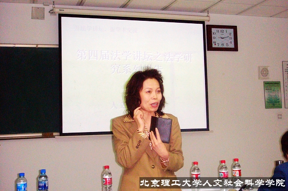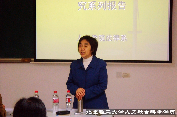 在正式報(bào)告之前,人文學(xué)院法律系主任楊亞非教授首先向本次活動(dòng)致詞。楊教授回顧了前三屆系列報(bào)告的情況,并對(duì)本屆系列報(bào)告的籌備工作以及意義進(jìn)行了簡單介紹,她指出,法學(xué)研究生的角色轉(zhuǎn)換始于法學(xué)研究報(bào)告,同學(xué)們?cè)诰?、專業(yè)的法學(xué)學(xué)理的指導(dǎo)下,只有深入社會(huì)調(diào)研,貼近社會(huì)生活,以法學(xué)的視角在現(xiàn)實(shí)社會(huì)中發(fā)現(xiàn)問題、解決問題,才能夠真正實(shí)現(xiàn)法學(xué)學(xué)科對(duì)于社會(huì)發(fā)展的指導(dǎo)與促進(jìn)作用,在社會(huì)調(diào)查中思考法律問題,不僅是一種報(bào)告形式,更是一種必要的學(xué)術(shù)研究的思路。楊老師說,在法律系師生的共同努力之下,經(jīng)過前三屆的積累,法學(xué)系列研究報(bào)告已經(jīng)成為了法律系乃至人文學(xué)院的品牌項(xiàng)目,為促進(jìn)人文學(xué)院的學(xué)術(shù)氣氛,營造北京理工大學(xué)良好的人文氛圍發(fā)揮了積極的作用。