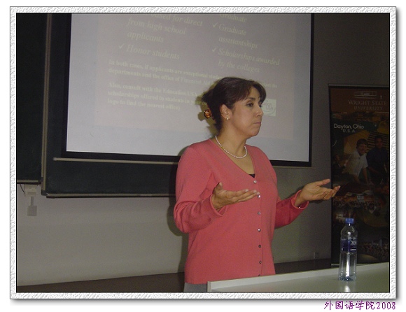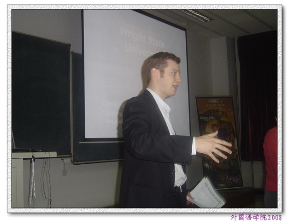 近日,外語(yǔ)文化節(jié)系列活動(dòng)之留學(xué)咨詢會(huì)在研究生樓302室舉辦,來(lái)自美國(guó)萊特州立大學(xué)招生部的兩位老師親臨活動(dòng)現(xiàn)場(chǎng),向同學(xué)們介紹了美國(guó)的大學(xué)和美國(guó)的文化。