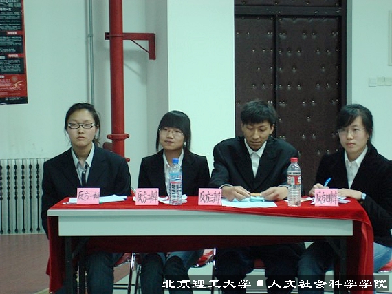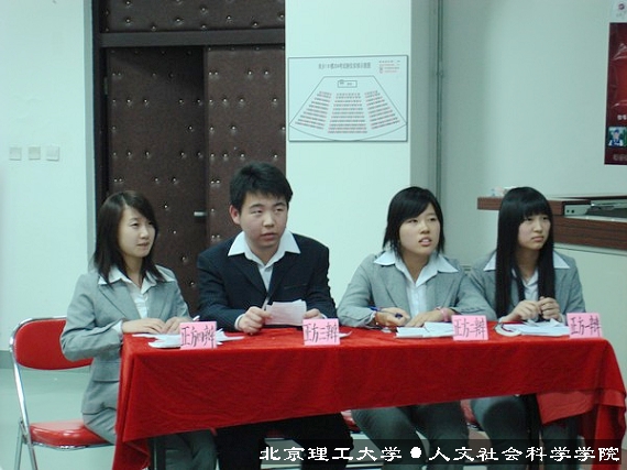 4月11晚,“北京理工大學新生辯論賽”半決賽在良鄉(xiāng)校區(qū)理科教學樓204順利舉行。。本場辯論以“打擊恐怖主義應不應當采取強硬手段”為辯題,到場的評委有中國地質(zhì)大學辯論隊的姜龍燕學姐、北京師范大學冠軍隊主力成員鄧沫楠學長、以及楊楠、申浩、袁和學長。