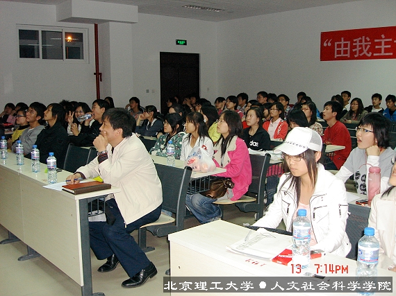 2008年4月13日07級人文學(xué)院學(xué)習(xí)部“由我主講”學(xué)生系列講座在良鄉(xiāng)理科教學(xué)樓108隆重拉開了帷幕。此系列講座是完全由學(xué)生主辦學(xué)生主講的活動,內(nèi)容豐富形式新穎,為同學(xué)們提供交流學(xué)習(xí)和展示自己的平臺。