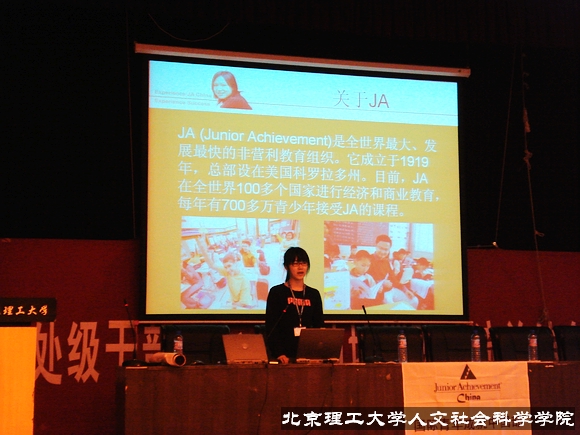 9:30,機遇與發(fā)展協(xié)會會長劉世偉宣布課程開始。首先,來自中國人民大學的岳琪同學,作為Junior Achievement 北京高校委員會的代表,上臺向大家介紹JA的宗旨。通過她的介紹,大家了解到,JA(Junior Achievement)是全世界最大、發(fā)展最快的非營利教育組織。該組織旨在培養(yǎng)和啟迪青少年重視市場經(jīng)濟,鼓勵他們通過了解商業(yè)世界和學習基本的經(jīng)濟學知識,來提高生活質量。而這門針對大學生推出的全球商業(yè)道德課程則是通過實際案例的展示和分析, 幫助大學生理解和分析商業(yè)道德問題,增強對商業(yè)道德問題的認識,形成積極的社會價值觀,進而在社會層面推廣商業(yè)道德理念。與此同時,進一步提高了大學生的職業(yè)發(fā)展觀和就業(yè)競爭力。