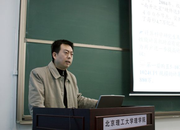 物理系教師王鋒代表學(xué)院介紹了計(jì)算科學(xué)研究生及學(xué)科公共服務(wù)平臺(tái)建設(shè),包括計(jì)算科學(xué)的內(nèi)涵、國(guó)內(nèi)外計(jì)算科學(xué)的情況、學(xué)科公共服務(wù)平臺(tái)建設(shè)內(nèi)涵、服務(wù)門類、組織管理機(jī)構(gòu)、平臺(tái)建設(shè)階段目標(biāo)等內(nèi)容。