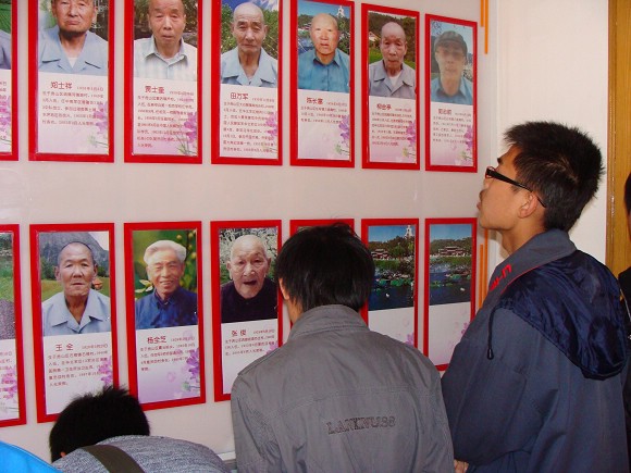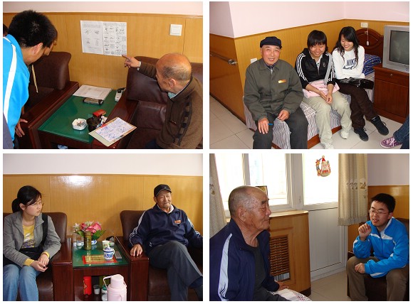 首先,我們被邀至陳列老人照片與優(yōu)秀事跡的榮臣室進(jìn)行參觀,然后我們分為四個(gè)小組,每一組分別與不同的老人進(jìn)行交流、學(xué)習(xí)。學(xué)習(xí)完后,為老人表演節(jié)目,同老人進(jìn)行一些有娛樂活動(dòng),最后留影留念?;貋碇?,同學(xué)相互討論交流,并每人遞交一份學(xué)習(xí)材料。