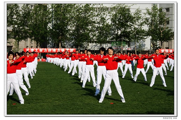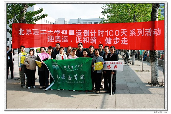 在這陽(yáng)光明媚、春意盎然季節(jié),2008北京奧運(yùn)悄然臨近。北京理工大學(xué)外國(guó)語(yǔ)學(xué)院積極參加迎奧運(yùn)倒計(jì)時(shí)100天系列活動(dòng)——4月22日的廣播體操表演、4月23日的健步走活動(dòng)。