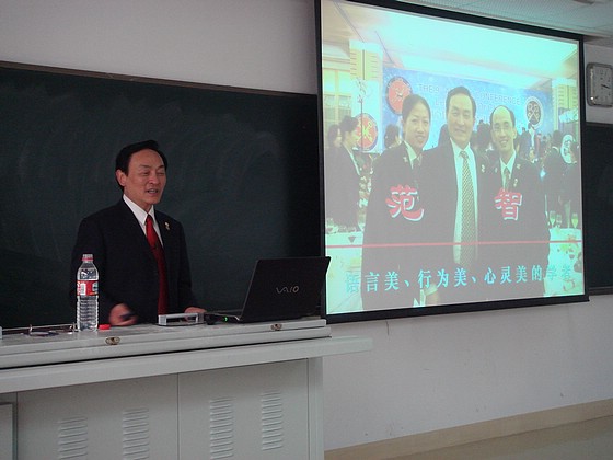 范老師以生動(dòng)形象的語(yǔ)音語(yǔ)言,表情語(yǔ)言,身體語(yǔ)言,完成了這次精彩的講座,并且現(xiàn)場(chǎng)進(jìn)行了模擬訓(xùn)練,講座持續(xù)了三個(gè)小時(shí),課堂不斷被掌聲和笑聲打斷,收到同學(xué)們的熱烈歡迎。在講座互動(dòng)過(guò)程中范老師也對(duì)我校學(xué)生的提問(wèn)水平給予了高度評(píng)價(jià)。