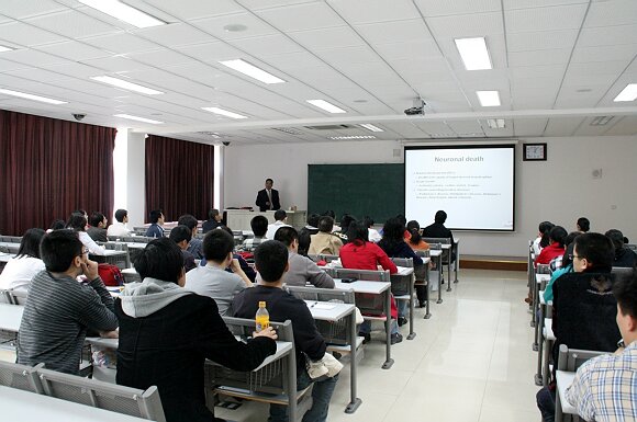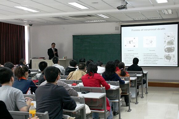 2008年4月24號(hào)下午,生命科學(xué)與技術(shù)院舉辦了一場(chǎng)“21世紀(jì)學(xué)科前沿”系列講座,邀請(qǐng)來(lái)自加拿大University of Manitoba 大學(xué)的Jiming Kong教授,帶來(lái)一場(chǎng)題為“神經(jīng)退行性疾病中的神經(jīng)元死亡”的講座。本次講座得到了學(xué)院的高度重視,鄧玉林院長(zhǎng)主持了講座,唐曉英副院長(zhǎng),龐思平副院長(zhǎng),周連景副書(shū)記、副院長(zhǎng)和院長(zhǎng)助理李勤出席本次講座。