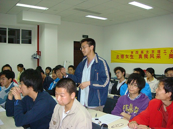 2008年4月20日星期日晚7:30分,在北京理工大學(xué)良鄉(xiāng)校區(qū)舉行了以“奧運(yùn),我為北京……”為主題的女生演講比賽。