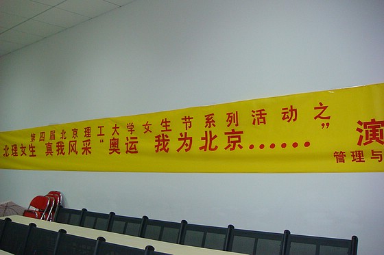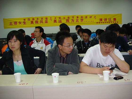 為了迎合08奧運(yùn)年和第四屆北京理工大學(xué)女生節(jié)活動(dòng)的到來(lái),管理與經(jīng)濟(jì)學(xué)院特此舉行以“奧運(yùn),我為北京……”為主題的女生演講比賽。本次活動(dòng)形式新穎,采取僅限女生參賽,男生作為大眾評(píng)審觀看比賽的形式。