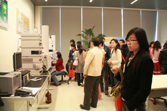 同學(xué)們饒有興趣的參觀了安捷倫公司的產(chǎn)品展區(qū),了解了安捷倫公司的科技發(fā)展歷程,今昔產(chǎn)品的對比,讓同學(xué)們深感科技發(fā)展的迅速,以及安捷倫公司在分析測試等領(lǐng)域?yàn)槭澜缈茖W(xué)研究做出的貢獻(xiàn)。同學(xué)們還參觀了安捷倫公司的開放實(shí)驗(yàn)室,觀看正在使用中的最新的技術(shù)設(shè)備,其中有不少設(shè)備都自己在科研使用過或正在使用的,大家紛紛與工作人員交流使用心得,感覺受益匪淺。