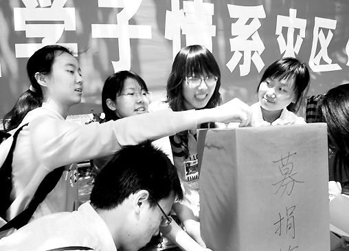 5月13日,北京理工大學學生在校園里踴躍捐款,該校研究生會、學生會和社團聯(lián)合會發(fā)起倡議向遭受地震災害的四川省都江堰市聚源鎮(zhèn)中學獻愛心,當天就募集數(shù)萬元。本報記者劉新武攝