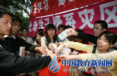 北京理工大學(xué)師生向?yàn)?zāi)區(qū)捐款。本報(bào)記者 修伯明 攝