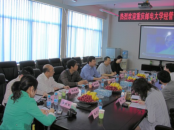 溫平川書記也介紹了重慶郵電大學(xué)經(jīng)管學(xué)院的一些情況。隨后參加調(diào)研座談的雙方教師就各自關(guān)注的問題進(jìn)行了交流。溫平川書記一行還觀看了反映我院發(fā)展和建設(shè)的兩部視頻片,參觀了實(shí)驗(yàn)教學(xué)中心的部分實(shí)驗(yàn)室。