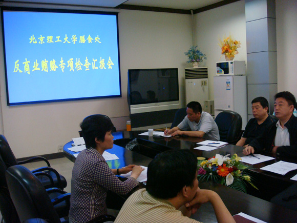 根據(jù)后勤集團(tuán)黨委的統(tǒng)一安排,2008年5月22日膳食處召開了反商業(yè)賄賂專項(xiàng)檢查匯報(bào)會(huì),出席會(huì)議的有后勤集團(tuán)黨委書記巫后新、膳食處處長(zhǎng)張書信、副處長(zhǎng)張小云、膳食處各中心主任、各食堂經(jīng)理及采購(gòu)、庫(kù)房等部門的負(fù)責(zé)人。
