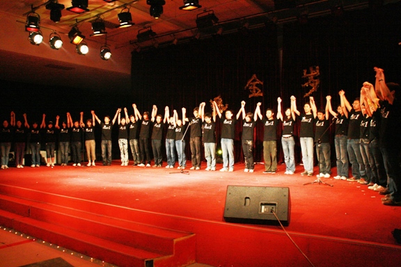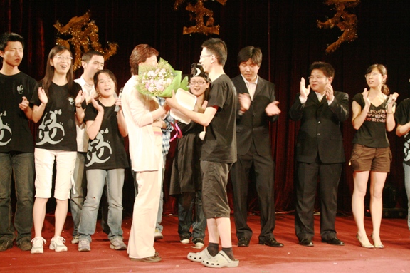 感謝同學(xué),感謝老師,畢業(yè)生們十分感謝學(xué)院的老師們四年以來(lái)對(duì)大家的教導(dǎo)與培養(yǎng),送班主任老師一束鮮花,道一句“老師,您辛苦了”,表達(dá)了同學(xué)們對(duì)老師的感激眷戀之情。04級(jí)輔導(dǎo)員胡文老師一曲感人的歌聲,把晚會(huì)推向了高潮,同學(xué)們紛紛走到臺(tái)上與胡文老師一起合唱,手牽手,紀(jì)念一起走過的四年時(shí)光。