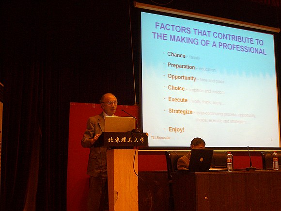 2008年06月03日下午,中國工程院外籍院士,美國國家工程院院士,美國光學(xué)學(xué)會、美國電子電氣工程師學(xué)會、美國科學(xué)家聯(lián)合會、中美光電子協(xié)會和國際工程聯(lián)盟會士厲鼎毅來到北京理工大學(xué),與理工學(xué)子一起漫話學(xué)術(shù),分享人生。幾十年來,厲院士一直忙于在國外進行科學(xué)研究工作,但卻始終心系祖國。這次趁著短暫的回國之旅,厲院士走進高校與大家分享他幾十年來的學(xué)術(shù)與人生體會。