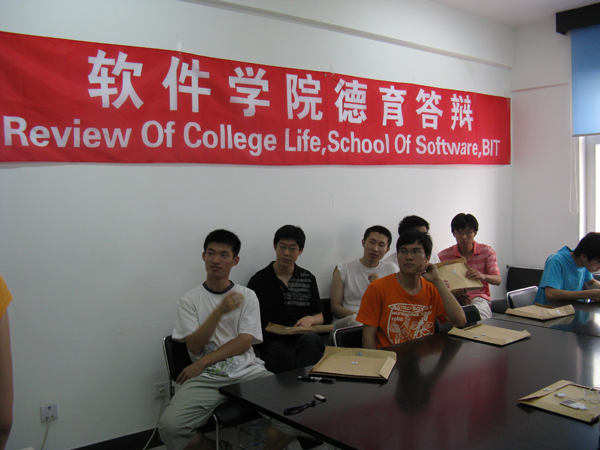 6月19日,計(jì)算機(jī)、軟件學(xué)院近400名本科2008屆畢業(yè)生開始陸續(xù)參加德育答辯。答辯在校內(nèi)四個場地同時進(jìn)行,學(xué)院領(lǐng)導(dǎo)、學(xué)生輔導(dǎo)員、班主任和部分任課老師擔(dān)任了德育答辯的評委。