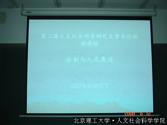 2008年6月15日,在研究生教學樓,第二屆北京理工大學人文文化研究生論壇之法學分論壇如期舉行,來自北京理工大學、北京航空航天大學、北京工商大學等高校的法學專業(yè)研究生共同參與了此次論壇。