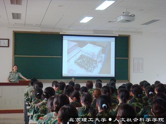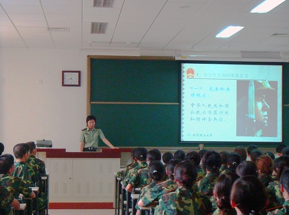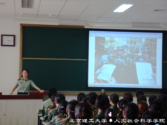 軍訓動員會開場,同學們觀看了人民解放軍“抗震救災”英雄事跡報告會,又一次更深地體會到了作為一名真正軍人的義務和職責。接著彭明雪老師向大家展示了06級同學們軍訓時的一些照片,并向同學們敘述了06級同學在軍事理論課學習和在八達嶺軍訓基地時的一些情況,讓07級的同學們對接下來的軍訓更多了一分期待,多了一分準備受苦的心理準備。