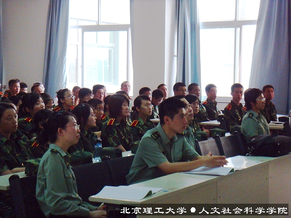 6月22日下午四時,人文學院07級軍訓動員大會在理科教學樓205舉行,與會的同學和老師們都身著軍裝,頭帶軍帽,儼然一位位英姿颯爽的軍人。到會的領導有:人文學院學院副院長賈利軍、人文學院軍訓指導員彭明雪、李雙、婁佳坤、曹正老師。在本次軍訓中,女生所屬二團六營二十八連,共分為三個排九個班。男生所屬十連,共一個排,三個班。由李雙老師和婁佳坤老師擔任指導員,分別由各班同學擔任副排長和班長。