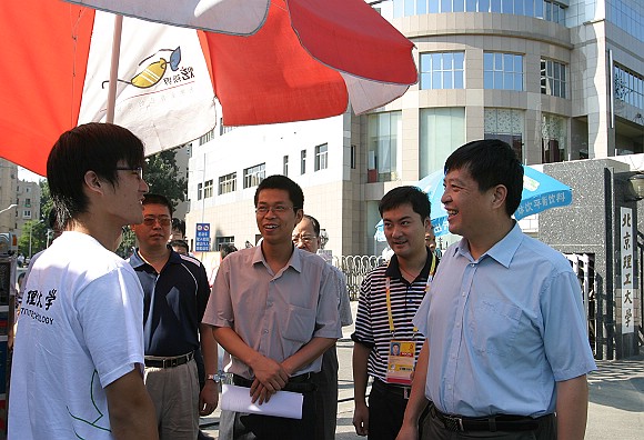 8月3日上午,校黨委副書記、工會主席侯光明、學(xué)校辦公室主任姚利民、學(xué)生工作處處長劉明奇、學(xué)校保衛(wèi)處處長李漢軍、保衛(wèi)處副處長婁榮生和康明、校團委書記徐強、校團委副書記代方震以及校團委部分老師一行先后來到北京理工大學(xué)北門、小北門、東門、南門和西南門,首先慰問了在這里工作的城市志愿者和安保志愿者。之后又在工作現(xiàn)場召開協(xié)調(diào)會,就前一段工作進行了總結(jié),并針對志愿者工作現(xiàn)存問題進行了協(xié)調(diào)解決。