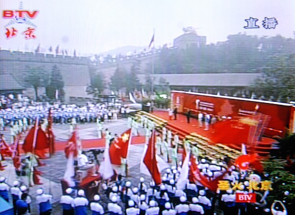 今天早晨7時,奧運圣火在北京第二天的傳遞從巍峨的八達嶺長城正式開始。