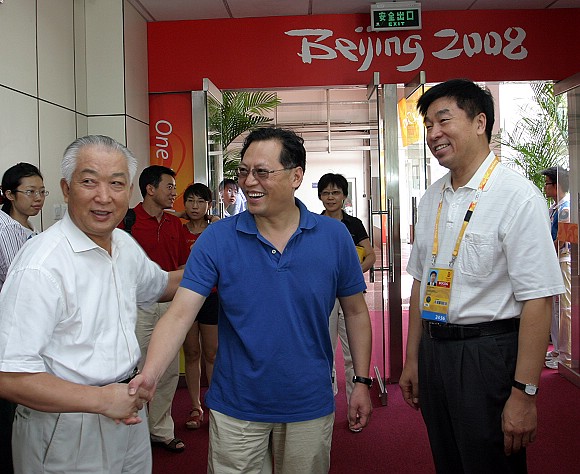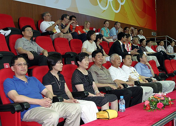 8月16日上午,中國(guó)人民解放軍總政治部副主任劉振起上將、中國(guó)人民銀行行長(zhǎng)周小川、工業(yè)與信息化部國(guó)防科技工業(yè)局副局長(zhǎng)孫來燕、中國(guó)兵器工業(yè)集團(tuán)公司總經(jīng)理馬之庚等領(lǐng)導(dǎo)來到北京理工大學(xué)體育館,觀看北京奧運(yùn)會(huì)中國(guó)與美國(guó)男排比賽。我校黨委書記郭大成、校長(zhǎng)胡海巖,黨委副書記、副校長(zhǎng)楊賓,副校長(zhǎng)趙長(zhǎng)祿、趙顯利、李和章等同來賓親切會(huì)面并陪同觀看比賽。