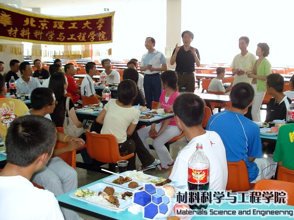 2008年9月14日,值此中秋佳節(jié)之際材料科學(xué)與工程學(xué)院黨委書記張德平、院長王魯、副院長劉景勝、副書記副院長韓笑等院領(lǐng)導(dǎo)來到良鄉(xiāng)校區(qū)親切慰問剛剛軍訓(xùn)歸來的08級本科新生,并與新生共進午餐、歡慶中秋佳節(jié)。材料學(xué)院輔導(dǎo)員李紫千、新生班主任王飛俊、周芳集、劉艷、李麗潔、薛云飛參加了慰問。充滿親情的豐盛午宴為新生送去了濃濃的暖意,剛剛結(jié)束了軍訓(xùn)磨礪的新生們充分感受到了材料學(xué)院這個大家庭的溫暖,以及作為一個材料人的幸福與自豪。王魯院長代表學(xué)院祝愿新同學(xué)中秋節(jié)快樂,并通過大家為他們家鄉(xiāng)的父母送去了節(jié)日的祝福。