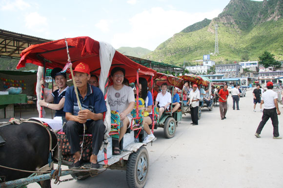 教師們乘坐山區(qū)特色的“驢車”前往旅游景點“國家地質(zhì)公園”