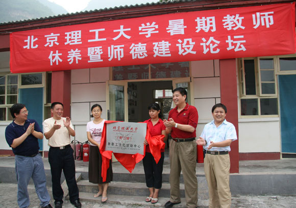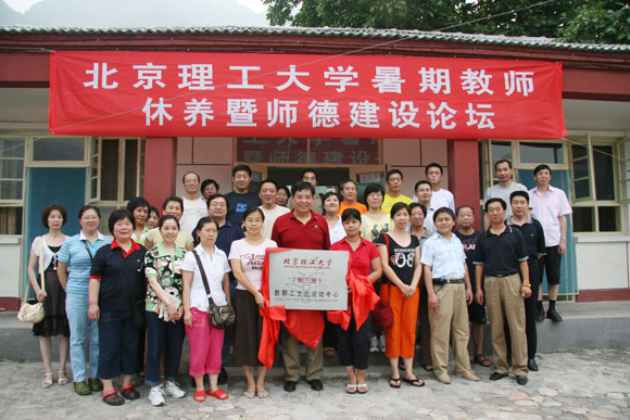 7月21日,由校工會組織的暑期教師休養(yǎng)暨師德建設(shè)論壇活動在河北省野三坡“北京理工大學(xué)后勤集團接待中心”舉行。校黨委副書記、工會主席侯光明親自來到野三坡為“北京理工大學(xué)(野三坡)教職工文化活動中心”揭牌,對教職工文化活動中心的掛牌表示祝賀,同時對參加休養(yǎng)的教師們表示親切的問候。