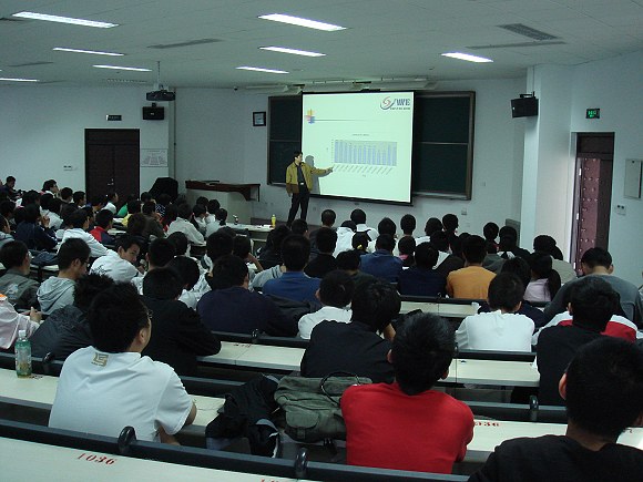 首先,郝老師代表機車學院向所有08級新生表示了熱烈歡迎,介紹了學院的規(guī)模,師資,及專業(yè)設置等情況。其次,他就機車學院的學生管理、個性化獎學金體系、安全、社團活動等方面做了精彩講話,并著重強調了學習、就業(yè)等問題,他告誡學生,學習是自己的責任,無法逃避,個人素質是決定就業(yè)情況的最大因素,與專業(yè)關系不大。