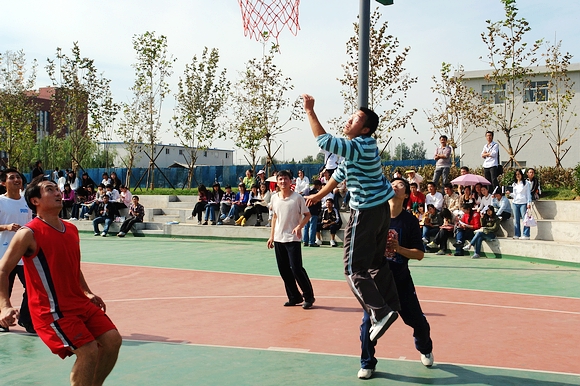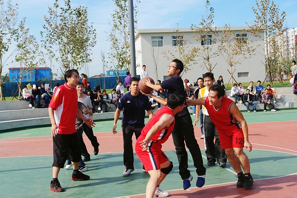 為了活躍學院工會會員業(yè)余體育和文化生活,也增進教師與良鄉(xiāng)校區(qū)低年級學生的師生交流,人文社會科學學院組織了一次別開生面的師生籃球友誼賽。此次比賽以學院籃球隊員為主體,組織了10人的球隊和14人的任課教師和機關(guān)工作人員的拉拉隊。所有在校的院務會領(lǐng)導到場觀戰(zhàn),李壽平、喻佑斌兩位副院長還作為隊員直接上場參賽。比賽按新的規(guī)則,分四節(jié)進行。學生隊以良好的體力和基本功開賽即獲得優(yōu)勢,從第三節(jié)開始,按事先的安排,雙方各派一位女隊員上場,混合賽讓賽場的氣氛達到了高潮。第四節(jié)重新回到起先的男子籃球比賽。雙方調(diào)整陣容后比賽更加激烈。最后,教師隊以微弱優(yōu)勢取勝。