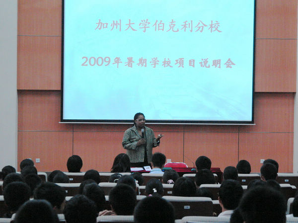 10月17日下午,加州大學(xué)伯克利分校校際合作項(xiàng)目主管 Skye Ward 女士應(yīng)教務(wù)處的邀請來到我校,在我校國際交流合作處和教務(wù)處老師的全程陪同下,Skye Ward 女士不辭辛苦,連續(xù)在良鄉(xiāng)校區(qū)和中關(guān)村校區(qū)舉辦了兩次2009年暑期學(xué)校項(xiàng)目說明會。參會學(xué)生反映強(qiáng)烈,參與積極,他們良好的英語聽說水平,給Skye Ward 女士留下深刻的印象。