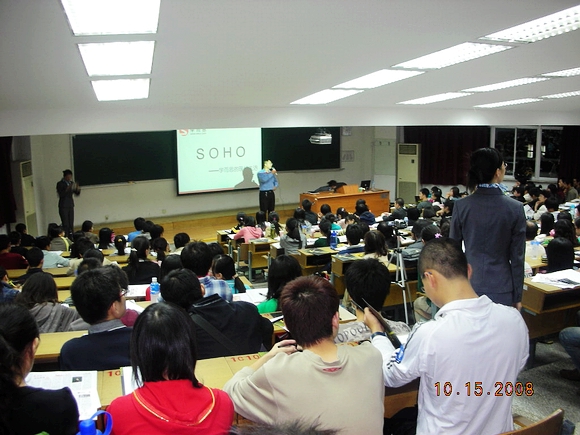 2008年10月15日晚上7時(shí),學(xué)而思教育集團(tuán)招聘宣講會(huì)在我校中心教學(xué)樓231正式拉開序幕。此次活動(dòng)由人文學(xué)院機(jī)遇發(fā)展協(xié)會(huì)承辦。當(dāng)天晚上300余人的教室座無(wú)虛席,門口也站滿了人,場(chǎng)面十分熱烈。這次活動(dòng)得到了學(xué)校同學(xué)很大的關(guān)注和支持。大家都對(duì)這場(chǎng)宣講會(huì)充滿了興趣和熱情。