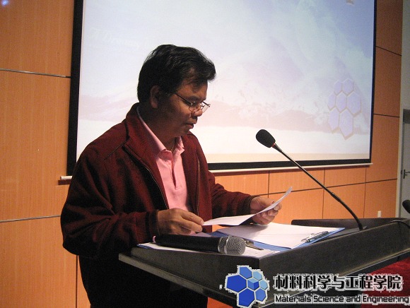 材料學(xué)院分黨委書記張德平教授致辭。他高度評(píng)價(jià)了柏百順石油化工有限公司熱心教育事業(yè)的善舉,并代表全院師生感謝柏百順公司長(zhǎng)期以來對(duì)我院的大力支持并表示院方愿意與柏百順石油公司在科研和人才培養(yǎng)等領(lǐng)域開展更深層次合作。他最后勉勵(lì)全院師生要努力學(xué)習(xí)、踏實(shí)工作為材料科學(xué)的發(fā)展貢獻(xiàn)力量。