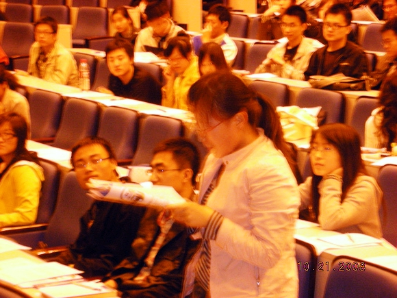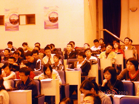 晚上七點,宣講會開始了,松下員工正在忘我的介紹松下的一些情況,從松下的歷史到松下現(xiàn)取得的輝煌成就。之后松下蘇州研究所得副所長給學(xué)生們介紹了一些研究所的研究方向和研究所得具體情況,同學(xué)們都很認真的在傾聽,并且不時做一些記錄。