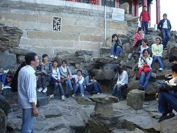 在萬(wàn)壽山下的假山休息,大家一起做游戲,才藝表演,歡聲笑語(yǔ)不斷
