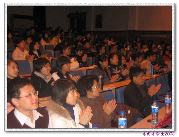 在感恩節(jié)來(lái)臨的前一天,作為外國(guó)語(yǔ)學(xué)院的品牌活動(dòng),第二屆感恩節(jié)系列活動(dòng)之一的電影配音大賽于11月26日晚七點(diǎn)在七號(hào)教學(xué)樓報(bào)告廳拉開(kāi)了帷幕。外國(guó)語(yǔ)學(xué)院黨委書(shū)記王文清老師,黨委副書(shū)記、副院長(zhǎng)吳文君老師,分團(tuán)委書(shū)記陳曉茵老師,學(xué)生工作辦公室李剛老師參加了活動(dòng)。