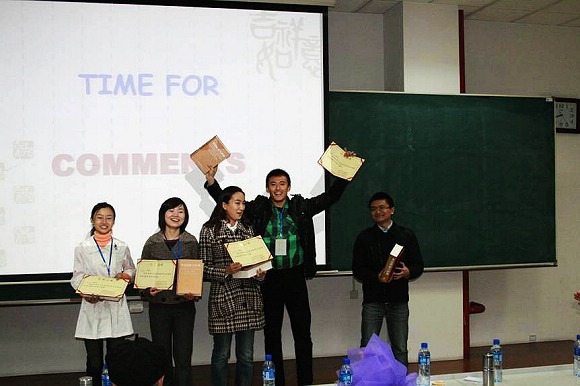 比賽結(jié)束時(shí),舉行了隆重的頒獎儀式。研究生院培養(yǎng)辦公室主任林海用英語作了總結(jié)性發(fā)言,指出從2006年起研究生英語演講比賽每半年舉辦一次,已經(jīng)成為北京理工大學(xué)一次學(xué)術(shù)盛宴,非常受廣大研究生同學(xué)的歡迎。他向獲獎同學(xué)表示祝賀,并號召其他研究生同學(xué)加強(qiáng)英語學(xué)習(xí),提高學(xué)術(shù)水平,并為學(xué)校的發(fā)展貢獻(xiàn)自己的一份力量。林主任詼諧幽默充滿激情的發(fā)言,博得了在場師生的陣陣掌聲。