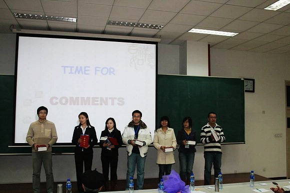 評委由外國語學(xué)院研究生英語教研室和博士生英語教研室的6名老師組成,并有一位美籍教師擔(dān)任提問嘉賓。