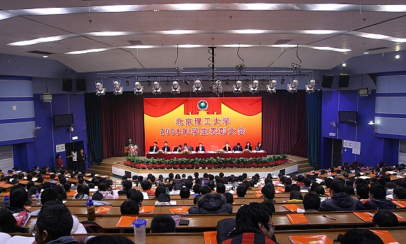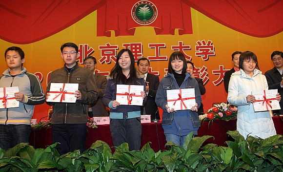 大會的最后,楊賓發(fā)表了熱情洋溢的講話。他首先代表學校黨委和行政對社會各界長期以來對北京理工大學的關(guān)愛和支持表示衷心的感謝。楊書記對我校2008年全年學生獲得的各類獎項和成績作了小結(jié)。2008年,我校共有14197人次和123個集體獲得各項表彰,獎勵金額達到了1782.62萬元,獲獎人數(shù)、獎勵力度再創(chuàng)我校歷史之最。最后,楊書記對同學們提出三點希望:第一,要加強修養(yǎng),錘煉品德,希望獲得表彰的班集體和個人珍惜榮譽,再接再厲,發(fā)揮榜樣示范作用,帶動身邊更多的同學,砥礪品性,自立自強,刻苦學習,為傳承和發(fā)揚我校優(yōu)良學風校風做出積極貢獻;第二,要勤奮學習,增長才干,希望同學們既要學好專業(yè)知識,也要提高政治理論,磨練意志,切實提高綜合素質(zhì),為今后走上社會、成就事業(yè)打下堅實基礎;第三,要立志奉獻,回報社會,希望同學們向優(yōu)秀的校友學習,懷抱感恩之心,牢記母校的重托、國家的培養(yǎng)和社會的關(guān)愛,以優(yōu)異的成績回報父母,回報學校,回報社會!