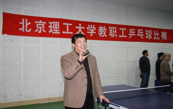 北京理工大學(xué)教職工乒乓球比賽2008年12月22日在北京理工大學(xué)體育館舉行。校黨委副書記、工會(huì)主席侯光明到場(chǎng)講話,并與后勤集團(tuán)黨委書記、紀(jì)委書記楊學(xué)洲為球賽開球。校工會(huì)常務(wù)副主席張劍軍宣布比賽開始,共有152多名教職工參加了此次男女乒乓球單打比賽。