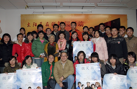 會(huì)后在我?!疤?yáng)花在線”影院舉行了全國(guó)高校校園影視聯(lián)播網(wǎng)“太陽(yáng)花在線”的開(kāi)播儀式,播放了公益電影《微笑圈》?!段⑿θΑ冯娪暗闹鲃?chuàng)人員,包括導(dǎo)演和演員等與我校學(xué)生進(jìn)行了互動(dòng)交流。