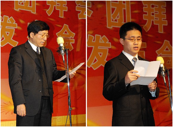 鼠去牛來辭舊歲,龍飛鳳舞慶新春。1月15日,我校在中心教學樓報告廳舉行了“2009年新春團拜會暨十大新聞發(fā)布會”。校黨委書記郭大成,校長胡海巖,校黨委副書記、工會主席侯光明,校黨委副書記趙平,副校長孫逢春、楊樹興、李和章出席團拜會。離退休老干部、各部處負責人及師生代表近500人參加了團拜會。