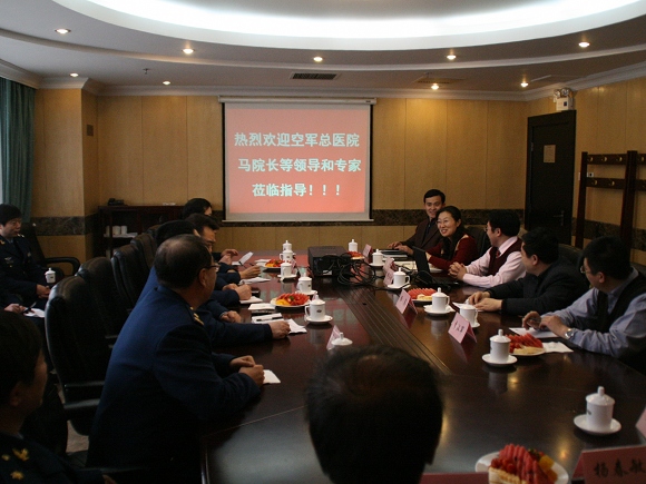 之后,鄧玉林院長介紹了學(xué)校的歷史沿革,并對生命學(xué)院的師資力量、科研平臺、承擔(dān)課題、研究領(lǐng)域、優(yōu)勢特色、發(fā)展思路等進(jìn)行了詳細(xì)的匯報,鄧院長重點介紹了我院空間生物艙研究課題、中藥現(xiàn)代化課題、老年癡呆癥研究課題、生物標(biāo)志物研究課題及生物芯片研究課題。馬中立院長聽完匯報對生命學(xué)院的現(xiàn)狀和發(fā)展給予了充分肯定,并認(rèn)為雙方具有廣泛的合作前景,并提出同生命學(xué)院在航空生物學(xué)方面進(jìn)行深入合作的愿望??哲娍傖t(yī)院也十分重視生理衰老、糖尿病、老年癡呆及帕金森病的病理研究,尤其對于航空動力與基礎(chǔ)醫(yī)學(xué)、“運動性”疾病進(jìn)行了廣泛和深入的研究,不但有十分豐富的飛行員生理病理樣本,而且具有大量可供臨床疾病研究的研究平臺。通過合作,生命學(xué)院能更好地發(fā)揮其基礎(chǔ)研究的優(yōu)勢,空軍總醫(yī)院也能在疾病研究領(lǐng)域方面取得長足進(jìn)步。
