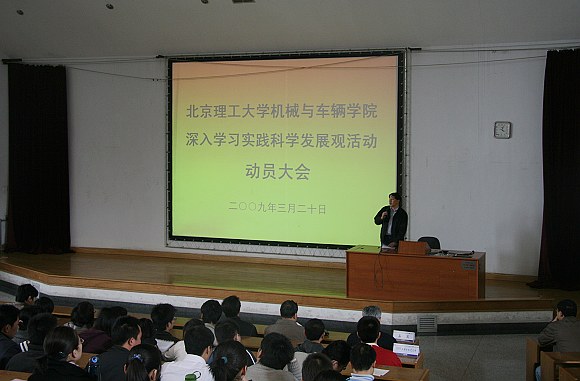 3月20日下午,機(jī)械與車(chē)輛學(xué)院深入學(xué)習(xí)實(shí)踐科學(xué)發(fā)展觀活動(dòng)動(dòng)員大會(huì)在中心教學(xué)樓317召開(kāi)。學(xué)校副校長(zhǎng)孫逢春、學(xué)校學(xué)習(xí)實(shí)踐科學(xué)發(fā)展觀活動(dòng)督導(dǎo)員甄剛、黨委研究生工作部部長(zhǎng)郝洪濤出席了大會(huì)。學(xué)院全體教職工黨員和學(xué)生黨員參加了動(dòng)員會(huì)。會(huì)議由院長(zhǎng)項(xiàng)昌樂(lè)主持。